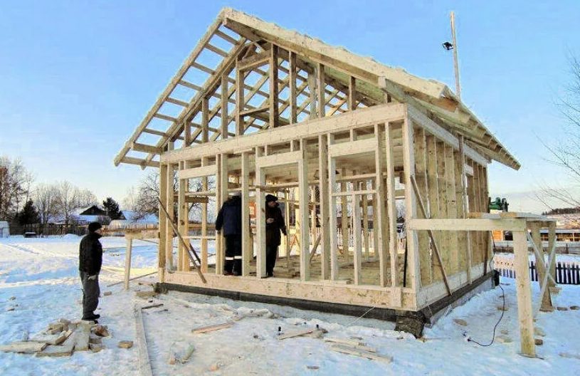 Зимнее строительство каркасного дома - Быстрый переход к внутренней отделке. Все коммуникации: трубы, электрика, вентиляция можно проложить прямо в перекрытиях и стенах каркасного дома, закрыть утеплителем и листами ГКЛ. И вот уже можно переходить к отделочным работ без необходимости штробления стен и перекрытий.